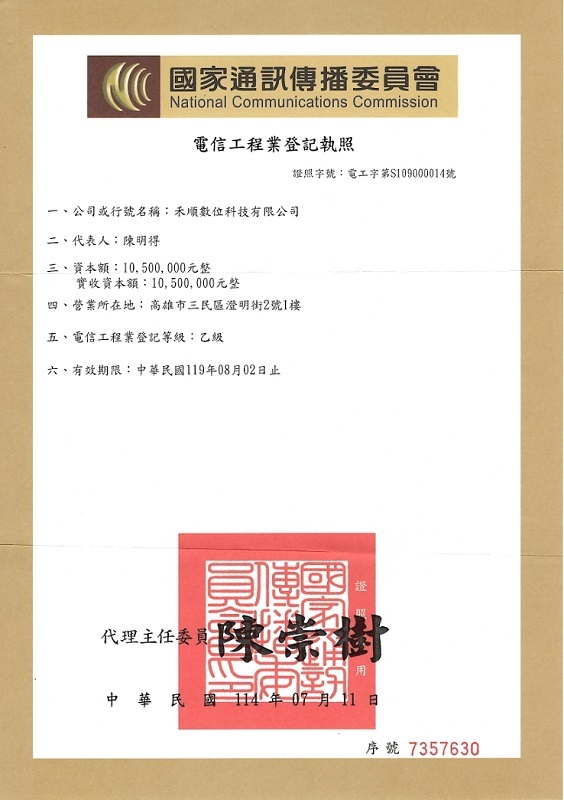 弱電通(禾順數位科技)於十多年前在高雄成立第一間服務門市,並於2018年起陸續成立台南、屏東及台中分公司,替更多地區的朋友們服務。為了在芸芸的監視器市場中讓客戶能夠看到甚至選擇我們的品牌,我們不斷精進自己,實施內部教育、研習產品新資訊與有效率的施工規劃,不只監視器,更想在弱電領域做得更完善,讓客戶指定弱電通為唯一施工廠商。