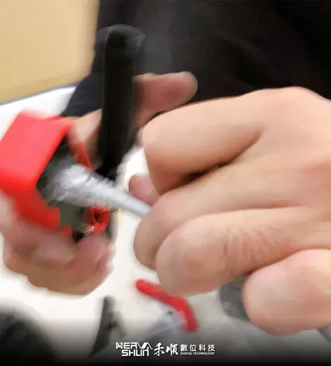 謝謝台南永康客戶對禾順猛漢的支持,還特別捕捉到製作CAT.6水晶接頭的瞬間