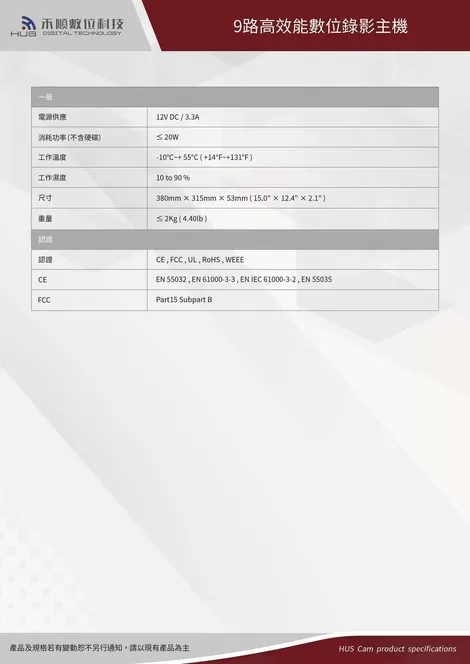 9路監視器主機 九路數位錄影監控主機(HS-NVR9760-U2)