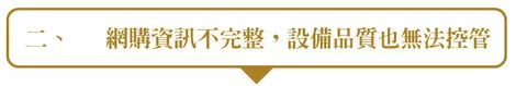 選擇請廠商代工或請廠商直接規劃產品到安裝完成,兩種方式各有好壞,以價格為考量,上網選購最便宜的設備當然是最省的,但選購最便宜的產品也同時得想到的是該產品的品質、耐久性等等。