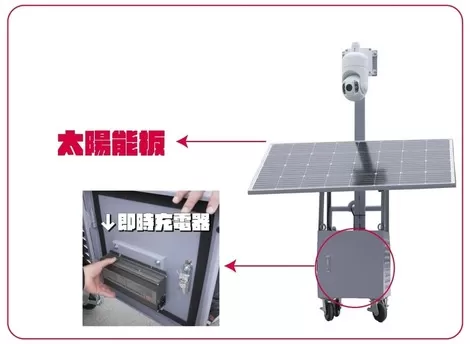 因為太陽能監視器系統不需要拉任何線路就可以使用,因此沒有線路限制,我們可以把太陽能監視器搭配輪子,就可以隨著拍攝的現場需求隨時移動。