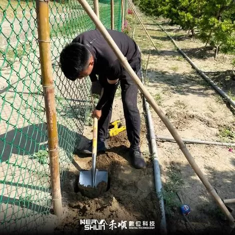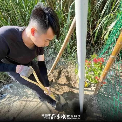禾順夥伴使用鏟子直接開挖,準備安裝用來固定鏡頭的立柱!