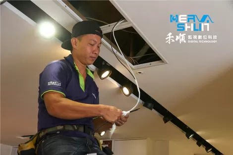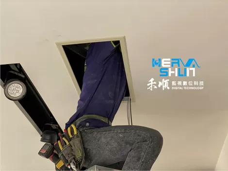 由於施工的不只是一樓,還有二樓的部分也需要裝設監視器,所以管線要拉到二樓。