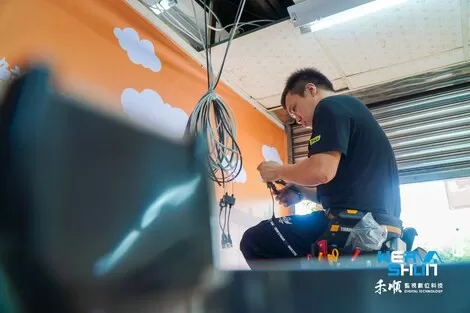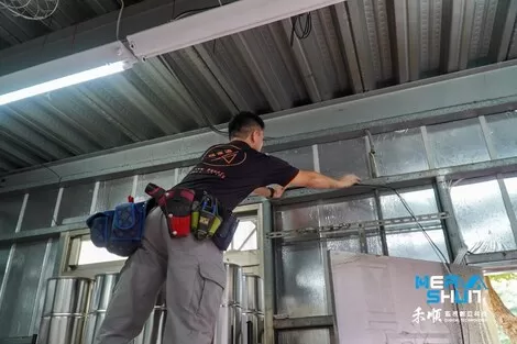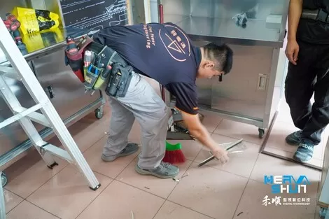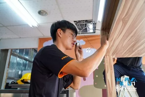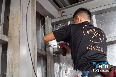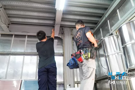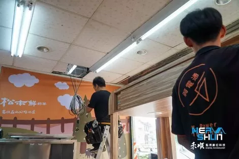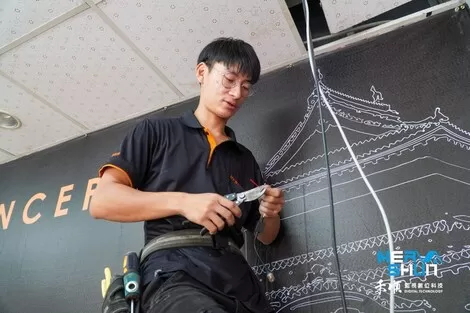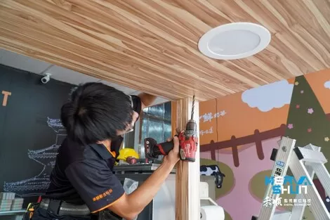 工程師要先將天花板移開把線路繞過去,再去做拉線