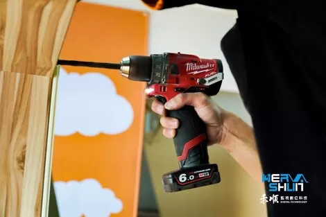由於櫃台要穿線進去所以用米沃奇電鑽打洞