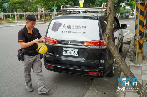 請工程師去車上拿板子準備跟客戶拍照囉~#保固有年限 服務沒終點