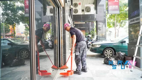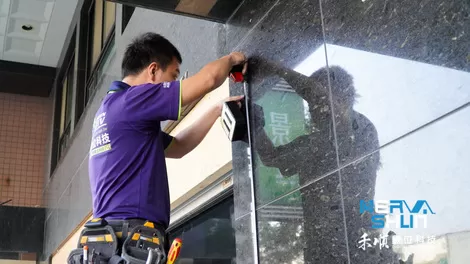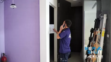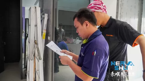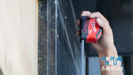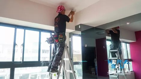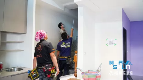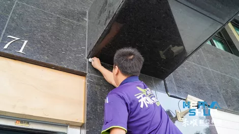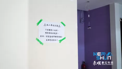 工程師說大理石牆面這邊要貼壓條、等等要先做擦拭上面灰塵較多