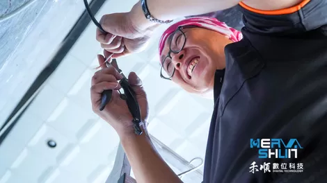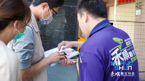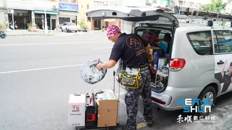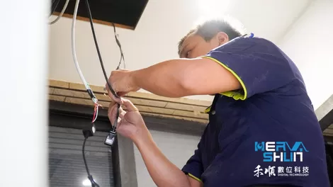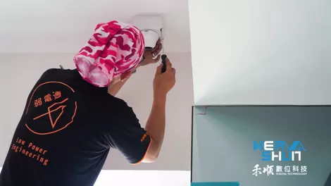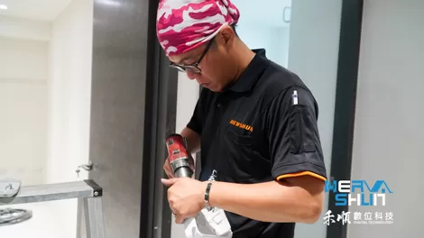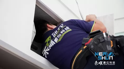 由於監視器安裝後有一點污漬工程師就清潔一下