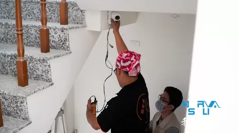 由於樓梯口這邊有一個角度要做更動,因為上面的燈打開會太亮導致監視器錄影會過曝