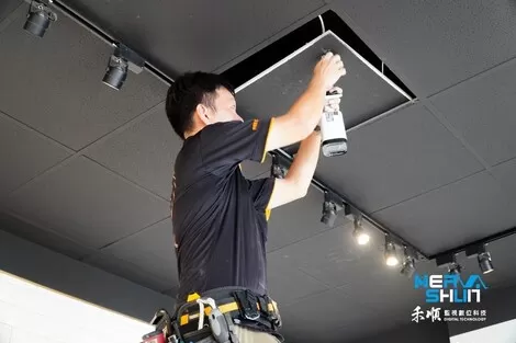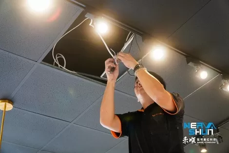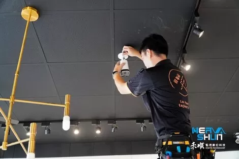 接著收銀檯上方的監視器也鑽好孔裝上設備