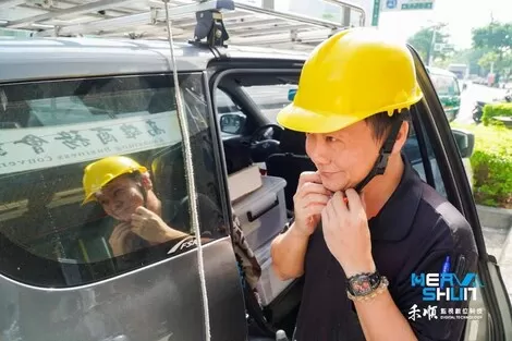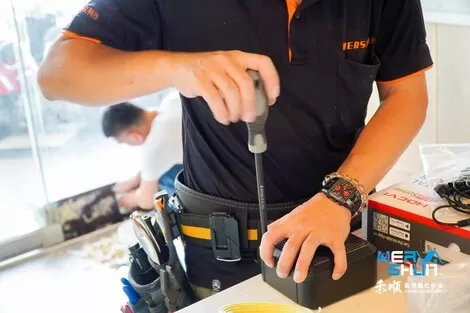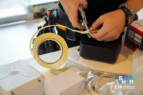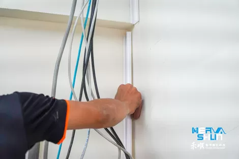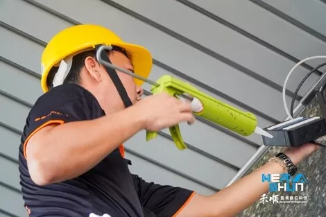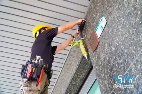 再來工程師拿出泡棉膠????貼在監視器防水盒上面?